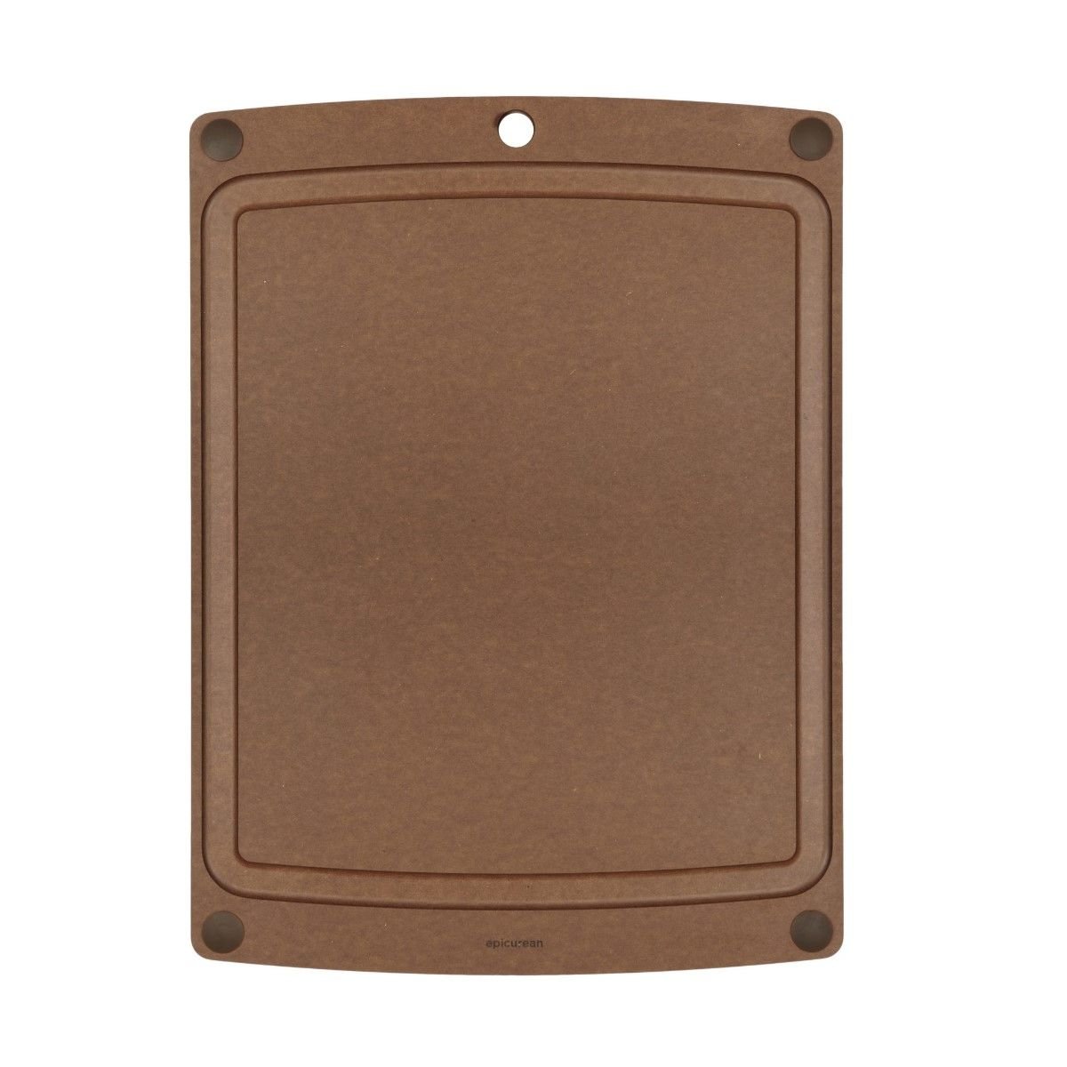 Made of sturdy, nonporous wood fiber composite material, this cutting board features a knife-friendly surface that won’t dull your blades. In fact, this cutting board is made so durable, it’s material can withstand temperatures of up to 350°F! In short, this made-in-the-USA board is highly trustworthy. The stylish, nutmeg brown cutting board is more than just sturdy- it’s also eco-friendly, so you don’t feel guilty when you buy it! The board features non-slip feet on the bottom, ensuring that it doesn’t slip under pressure during an especially tough cutting job. It also has generous juice grooves around the edges which trap meat, fruit and vegetable juices, saving you on messes to clean up! And when it’s time to wash your board, it’s as easy as throwing it in the dishwasher.