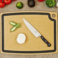 A solid cutting board is an essential piece of any chef’s arsenal. And you want to avoid boards that will damage your blades or wear out themselves in a short time. Luckily, with the Epicurean All-in-One Series Cutting Board 19.5″ × 14.5″ in Nutmeg brown, you can rely on your cutting board to last!