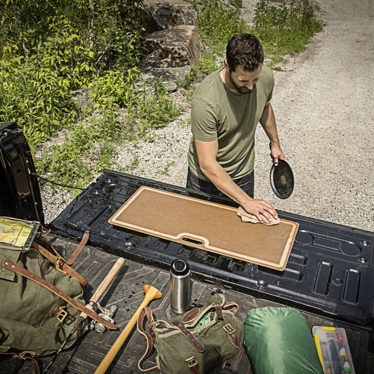 Turn the tailgate or a picnic table into a prep station with this 35” x 14.5” Big Game Board by Epicurean. This giant cutting board has a juice groove on one side and is smooth on the other, all while offering more than 500 square inches of work surface. This board is made of a wood-fiber material that won’t crack or split, is knife-friendly, and heat-safe to 350°F. Because it’s non-porous, it won’t ever harbor bacteria, so you can safely use it to filet trout, give it a quick wash, and then use it to serve food for the whole camp. Simple, functional, and built to last; this huge board is an outdoor kitchen/camping essential.