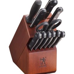 The Forged Synergy Series Knife set is made with the highest quality stainless steel on the market. This 16 piece block set is a great beginner to novice set for for anyone who wants to see the true power of a Henckel knife. The black block looks great on any kitchen counter top really making the satin finished stainless steel blades look even more amazing. The 16 Piece Set includes the most used knives in a kitchen including a chefs knife, paring knife, and santoku knife. The main difference between this set and the 13 piece is the 3″ vegetable knife with a Kudamono fine edge, the 8″ bread knife, and the 8″ carving knife. Also, the 5″ Serrated Utility has been upgraded to a 6″ Utility / Sandwich Knife.