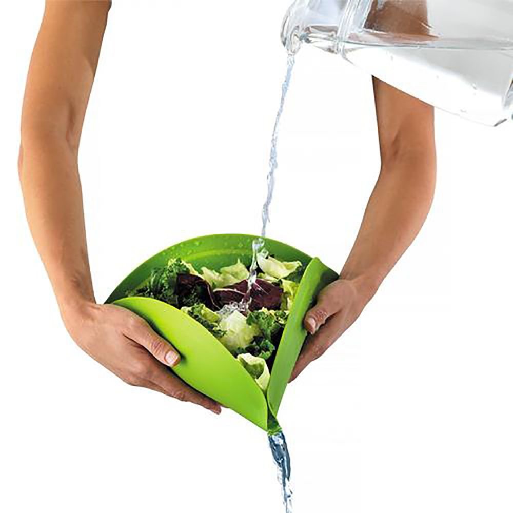 With just a few snaps, the flexible Magic Mat from Kuhn Rikon goes from cutting mat, to funnel, to bowl! You can chop fruit or vegetables on the knife-friendly surface, then fold and snap into a funnel to rinse ingredients under water or drain off juices and easily transfer to a pan or bowl. It can even function as a fruit storage bowl that can be unfolded and stored flat when not in use. The mat is dishwasher-safe for easy cleanup.