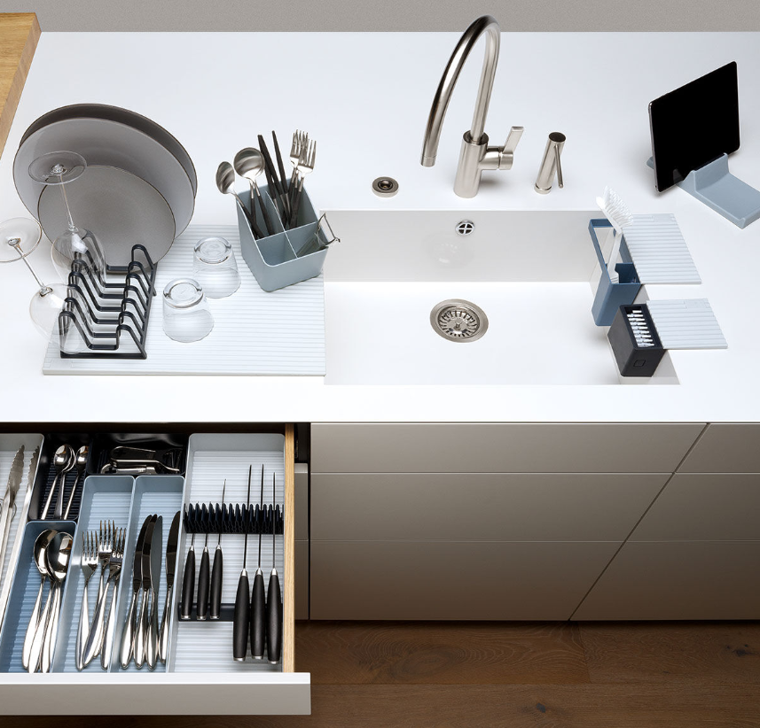 Inspired by the movement and hue of water, the Wave Collection by Kuhn Rikon features a unique wave pattern designed seamlessly within each item for advanced functionality and a modern, organic look. Let the calming presence of the ocean make organizing and cleaning a breeze with kitchen cleaning and storage solutions from the Wave Collection by Kuhn Rikon!