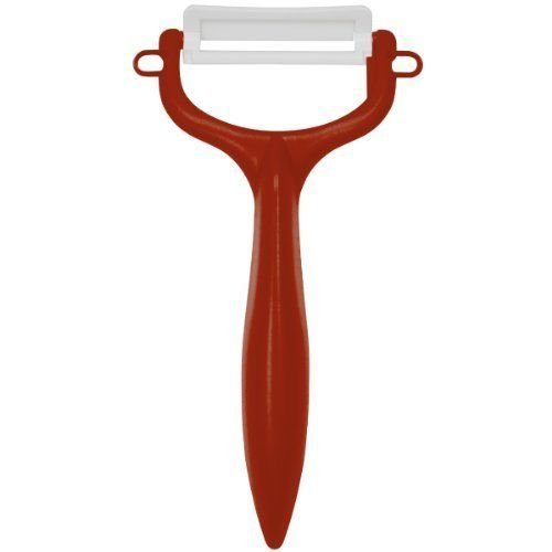 The Kyocera Ceramic Vegetable Peeler in Red is a perfect for fruits and vegetables. Made with a double ceramic edge which is second to diamonds in regards to sharpness and hold it’s edge 10 times longer than stainless steel. A crafted handle makes it a comfortable fit. Watch your prep time get cut in half and witness a peeler that will last a lifetime. To wash, rinse the blade with luke warm water and pat dry. Enjoy quality products from Kyocera, brought to you by EverythingKitchens.