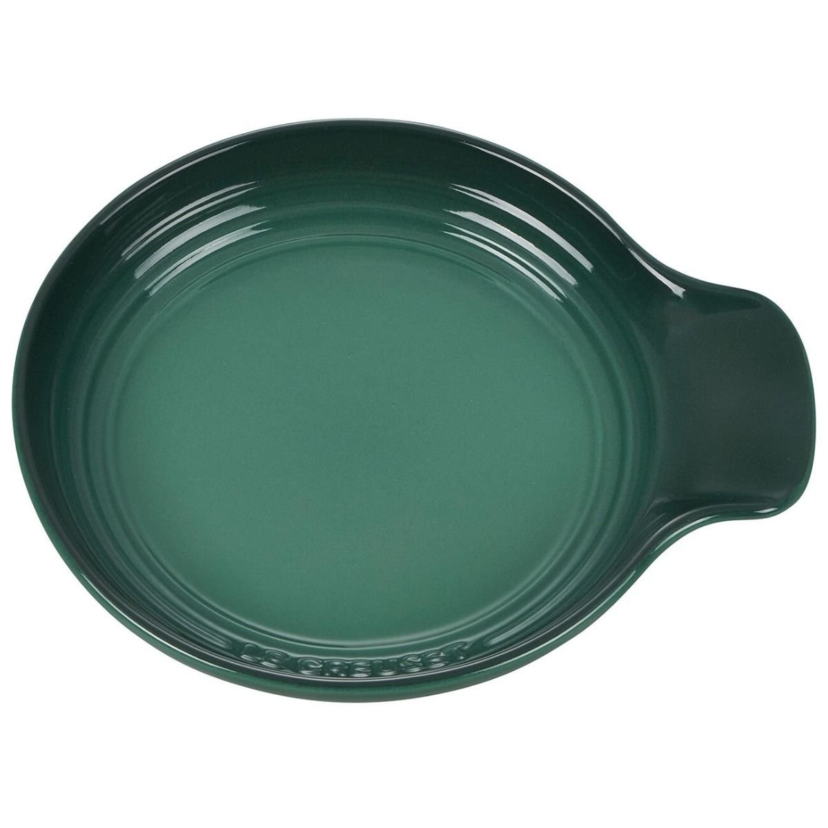 Protect your tablecloth and countertops from unnecessary food mess with the Le Creuset 6″ Spoon Rest in Artichaut. This stoneware spoon rest’s side groove secures your utensil’s handle while the large, circular bowl supports utensils of any size and catches drips and splashes. Whether you’re ladling out savory brown gravy, passing around juicy burgers or serving up heaping spoonfuls of homemade cobbler, bring this gorgeously-colored spoon rest along to the table for an accessory that is both functional and stylish. When it’s time to clean up, this spoon rest’s glazed interior is almost as good as nonstick for rinsing off foods or can be placed in the dishwasher.
