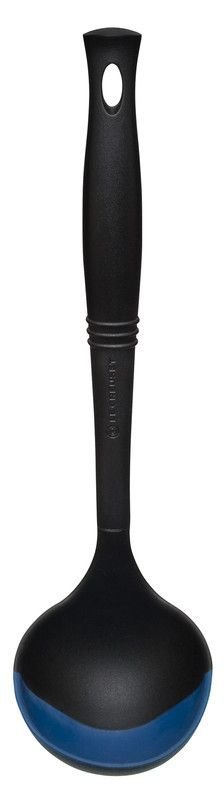 Serve up every ounce of soup in the pot easily with Le Creuset’s Revolution® Bi-Material Ladle in Marseille Blue. Designed to improve even the toughest cooking tasks, Revolution® tools are made with a pliable combination of flexible silicone and rigid glass-reinforced nylon so they conform to the edges of pots and pans while retaining strength and durability. This Ladle in black and Marseille Blue has an elliptical handle for comfort and control with grip rings. Its malleable edge curves to fit corners, making it easy to remove liquids without having to tilt the pot. Invite it to dinner the next time you’ve made a big pot of soup and it’ll make the serving easier!