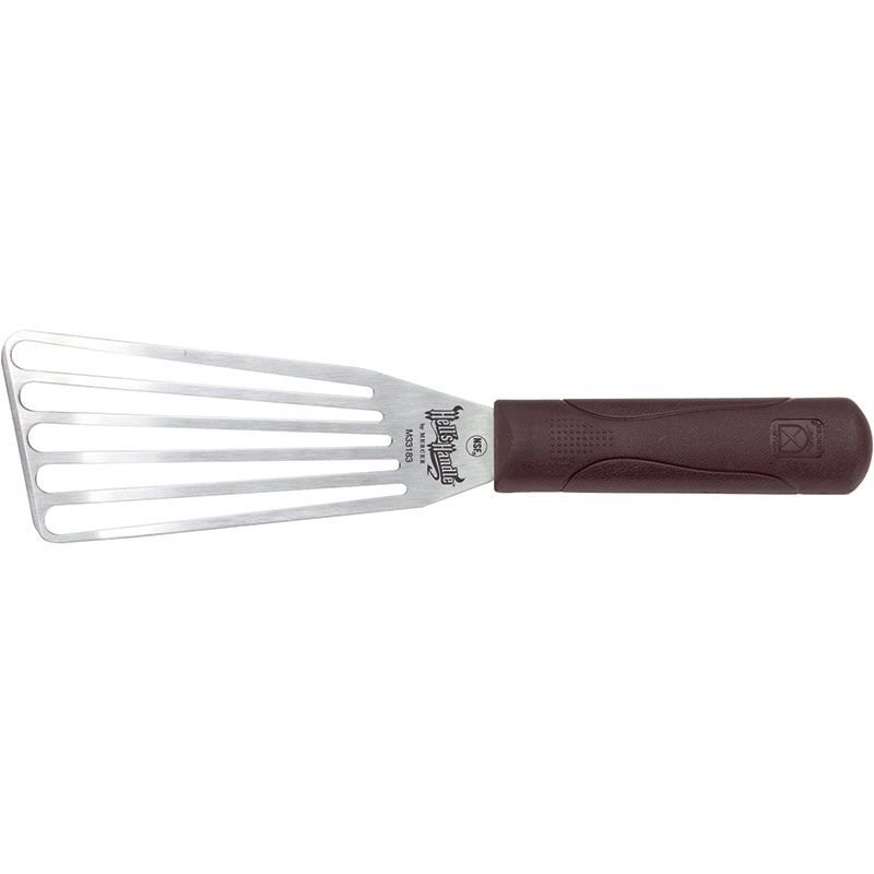 Flip your fish with confidence with the Mercer Hell’s Handle 6” x 3” Fish Turner. Designed with a tapered blade that widens to support even the most delicate fillets. As part of the Hell’s Handle collection, this turner is made of durable stainless steel that is precision-ground. To make this turner even easier to use, it’s handle is dual-textured, allowing for a non-slip grip. The nylon handle is also heat-resistant, designed to absorb 50% less heat than a traditional turner. Enjoy perfectly seared or grilled fish fillets, get the Mercer Hell’s Handle Fish Turner today!