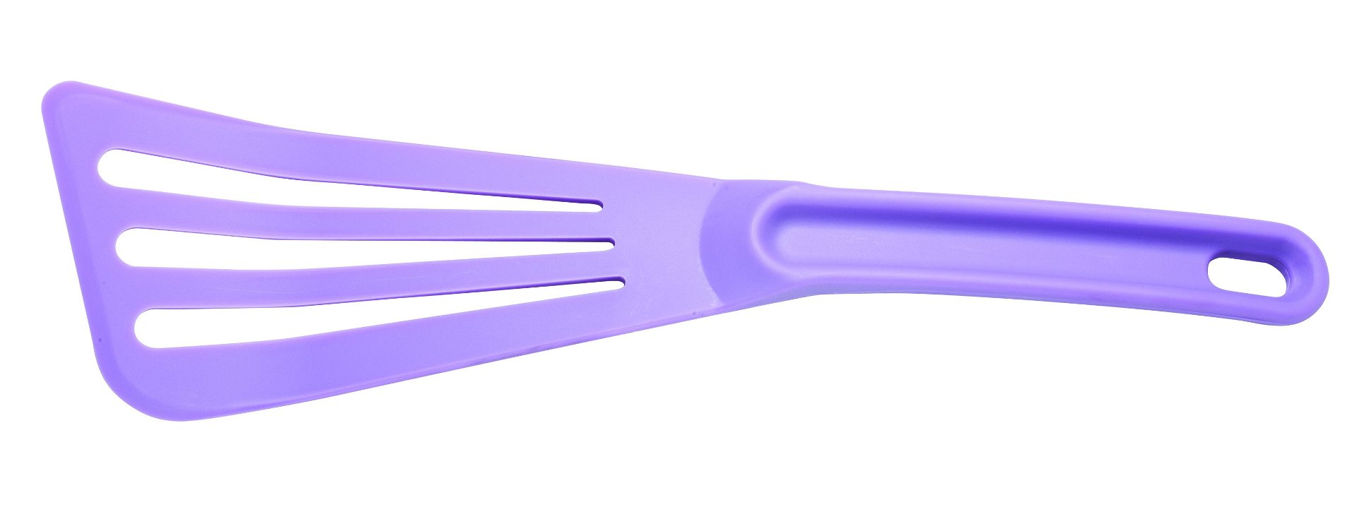 In your kitchen you want a slotted spatula that can stand up to the task without damaging your food, ruining your cookware, melting if you leave it in a pan or too close to a burner, or trapping germs from many hands. Meet Mercer Culinary Hell’s Tools High-Heat 12” Slotted Spatula in Purple! This commercial-grade spatula is made from a specially formulated glass-reinforced nylon so it can stand up to the heat. The beveled edge gets under food quickly and precisely while the thin, flexible blade is designed to pick up delicate or large items without damage. The seamless design and one-piece construction make this the most sanitary slotted spatula available. Intended for either home or commercial use, this heavy-duty spatula is NSF-certified for safety, performance, and quality; and the many color choices make it ideal for a designated use program or HACCP plan. This slotted spatula is tough enough to survive in Hell’s own kitchen—you’ll definitely want it in yours!