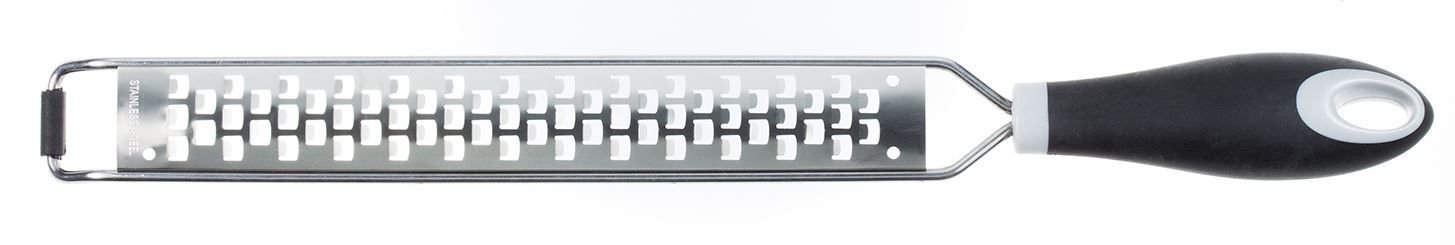 Chefs and Gourmands have been reaching for acid-etched graters ever since they transitioned out of the workshop and into the kitchen because professionals know an acid-etched blade is better in all ways than a stamped one. Now Mercer Culinary is heating up the competition with the affordable acid-etched graters in their new MercerGrates™ line. When you need to grate zucchini, potatoes, soft cheeses, carrots, or cabbage, reach for a MercerGrates Narrow Extra-Coarse Grater. Made of heavy-duty 18/8 stainless steel that’s resistant to corrosion and pitting, the acid-etched blades provide a super sharp cutting surface that will stay sharp longer. The handle is ergonomically shaped for comfort, while a stability bar keeps the grater from slipping on your work surface. A snap-on plastic cover is included for safe storage (because really, it’s that sharp). This rasp-style Narrow Extra-Coarse Grater is especially perfect for grating soft cheese over the plate or pan.