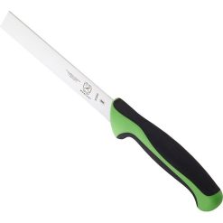 Enjoy delicious meals with ease using the Mercer Genesis Serrated Steak Knife Set. This set of six knives is an Everything Kitchens exclusive. Each blade is forged from high carbon German steel and NSF certified, so they are at home in both professional and home kitchens. The Genesis steak knives feature an ergonomic handle, black with silver accents that are as comfortable to use as they are beautiful to look at. Designed with a serrated blade, these knives are perfect for slicing up anything from steak apple slices to sandwiches. This versatility makes the Everything Kitchens exclusive Genesis Steak Knife Set a must-have for your cutlery collection.