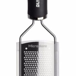 Are you looking for the perfect tool for zesting citrus, grating chilis and garlic, and making baby-fine powdery, clouds of parmesan without needing any “elbow grease” to get the job done? Microplane’s Gourmet Series Fine Grater is the one you’re looking for! The original company to bring the woodworking tool out of the garage and into the kitchen, Microplane’s ultra-sharp blades are photo-etched instead of stamped like most of the competition, so while other graters you’ve used may have seemed dull, a Microplane blade will never disappoint. The graters in the Gourmet Series are paddle graters, used by chefs and gourmands everywhere. A non-slip base keeps the grater safely in place, while a soft-touch handle makes it comfortable to use. Able to grate any food easily, you’ll be reaching for this fine grater time and again to top your food with melt-away strands of cheese, to make a paste out of garlic for tzatziki, to zest lemons, and more!