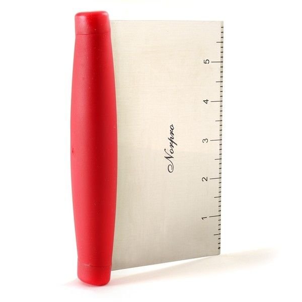 Chop, cut, crush, scrape, measure – how many uses for the Norpro Grip-EZ Chopper/Scraper can you discover? This stylish red chopper/scraper features a stainless steel blade that can take on kitchen tasks from slicing doughs to crushing nuts, and its trademarked Grip-EZ handle keeps it comfortable to use. The handy measuring guide along the blade lets you accurately measure doughs for rolls and loaves; its broad, 6”-wide surface is perfect for scraping up chopped foods to slide into a mixing bowl, or cleaning dough or flour off of your work surface. Make sure your kitchen is fully outfitted – tuck a Norpro Grip-EZ Chopper/Scraper into your utensils drawer.