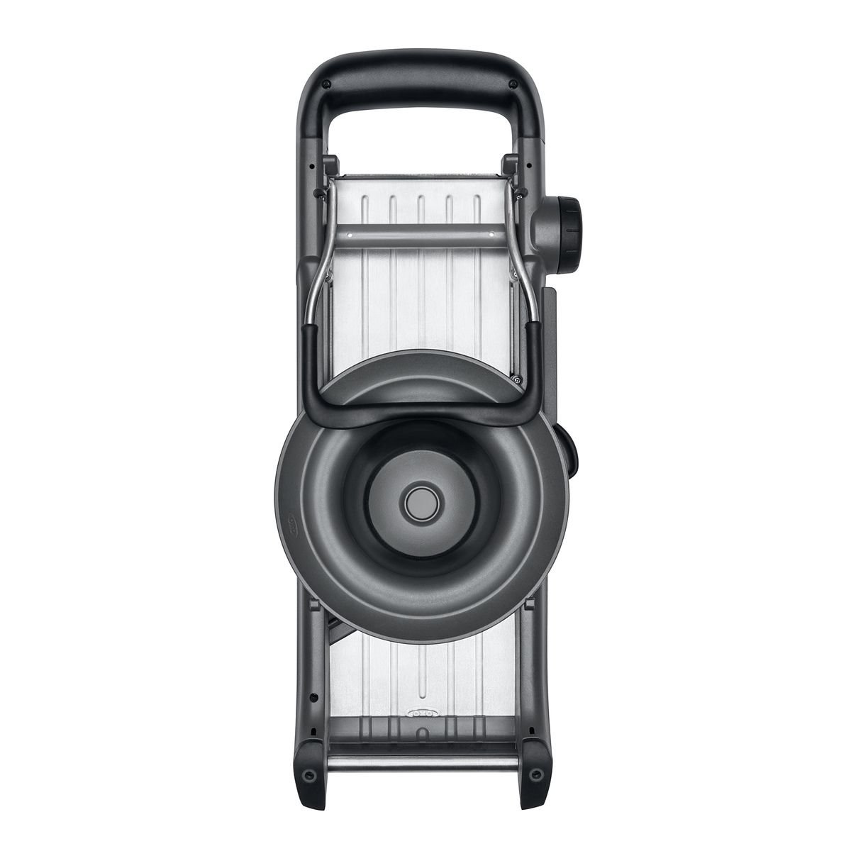 Masterfully prep any ingredient with the OXO Good Grips Chef’s Mandoline Slicer 2.0! With an astounding 21 different cut options, including straight and wavy, julienne, and french fry blades, this mandoline is a true multi-tasking tool. An indicator window gives you a view of the settings from above, making it easy to pick the right one. Bring home the Chef’s Mandoline and you won’t need professional knife skills to make matchstick carrots, thin slices of fruit for a tart, or mounds of paper-thin potatoes for homemade chips!
