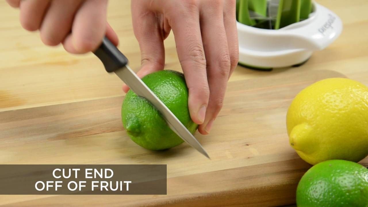 - Simply use a pushing motion on a whole citrus fruit for wedges