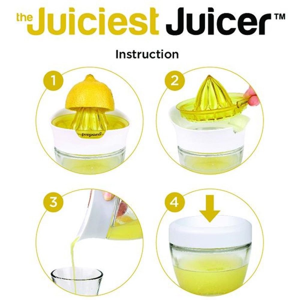 Turn juicing into a relaxed process for those after-hour cocktails with your very own Prepara Juciest Juicer! The aggressive fluting of the reamer takes those citrus fruits down to size and stores them in a glass base. This juicer also includes a lid to keep your juice fresh in the refrigerator. Effortlessly juice your lemons, limes, oranges, and other fruits efficiently with the Prepara Juciest Juicer!
