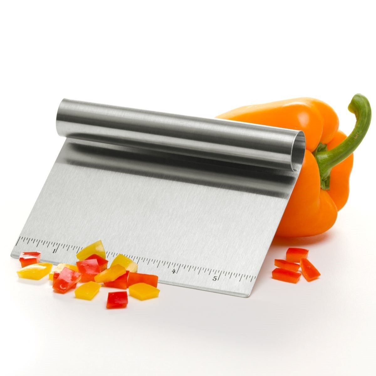 The Progressive International Bash ’N Chop is a unique tool made to slice, chop, mince, and scoop. Made of stainless steel, the cutting edge features a 6” ruler for accurate measuring and slicing. Dishwasher safe, the handle on the Bash ‘N Chop is rolled to comfortably fit in your hand.