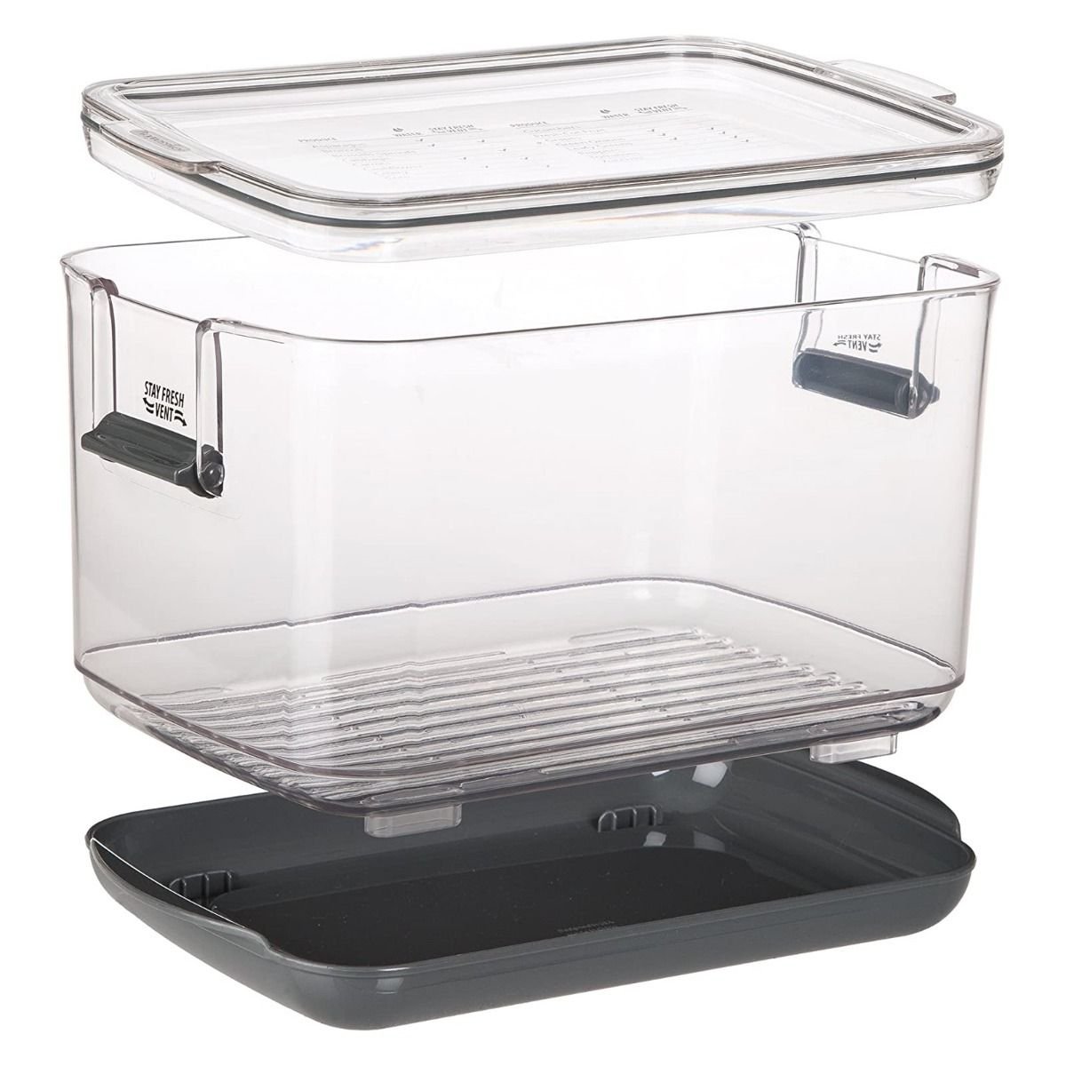 - Stay fresh vent tab on each side, allows air to flow through the container