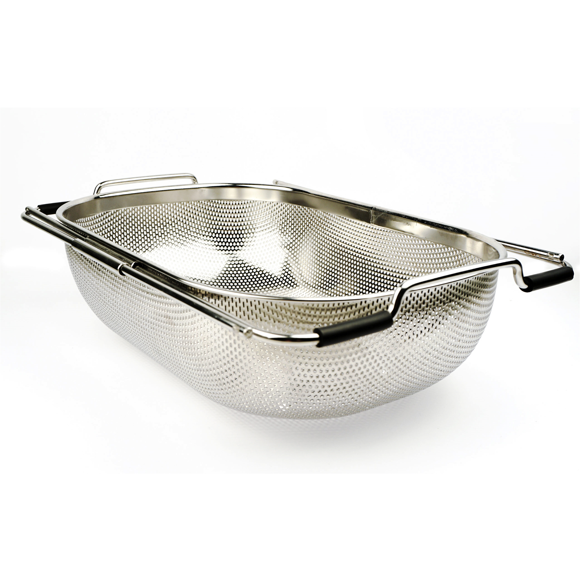 Drain family-sized batches of fruit, vegetables, and pasta with the RSVP Endurance Precision Pierced Over-the-Sink Colander! This large drainer is made of 18/8 stainless steel and has adjustable steel arms that extend between 14.5” to 22” to fit most sink sizes. Built with rubber handles that secure to the sink and make transporting around the kitchen a breeze, this large colander is designed with small drainage holes that won’t let small foods slip through while allowing water to drain away quickly and efficiently. For washing, straining, and draining large batches of fruits, rice, and other foods with ease, try the RSVP Endurance Precision Pierced Over-the-Sink Colander today!