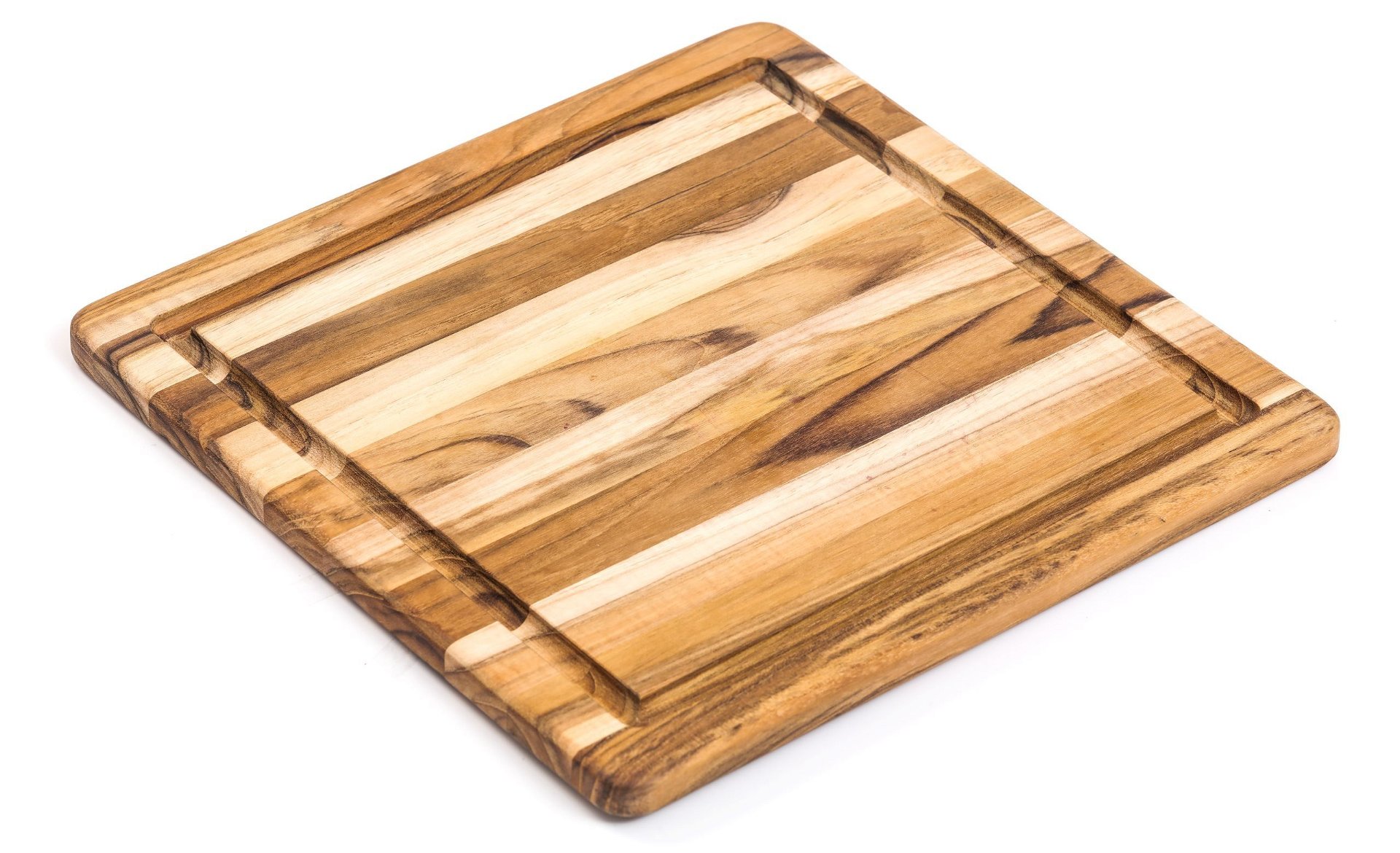 Equip yourself with a cutting board that’ll remain beautiful after years of use with the Essential Cutting and Serving Board by TeakHaus! From the Essential Collection, which features pieces designed with the perfect balance between functionality and style, this 11.75” x 11.75” cutting board is crafted from FSC®-certified, stain-resistant teak wood that’ll never dull your knives. With a slim, lightweight construction and a stylish edge grain surface, this piece seamlessly transitions from a cutting board to a serving board for an elegant presentation. Plus, it has a convenient juice canal along the border to catch excess liquids from ripe tomatoes, juicy meats, and other foods. Slice meats, veggies, and cheeses or serve up a dazzling charcuterie spread with the TeakHaus Essential Cutting and Serving Board today!