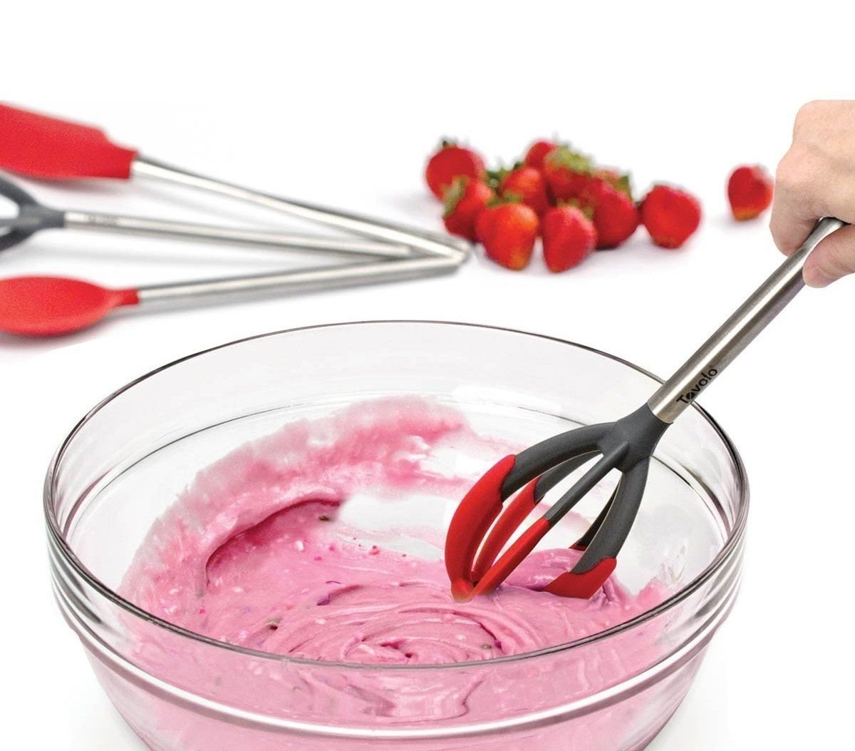 Mix and scrape all with one little tool! The Tovolo Better Batter Tool is perfect for mixing everything from cake batters, gravies, cookie doughs, and much more. The tapered silicone fins of this mixing whip scrape the sides of your mixing bowl as you stir, preventing lumps. It’s also great when you’re stirring sauces and gravy; the scraper fins make it easy to scrape down the sides of the pan as you stir so nothing burns! Heat-resistant to 600°F, efficiently and quickly mix up anything, hot or cold. Add the Better Batter Tool to your kitchen and lumpy gravy and undermixed cake batter will be a thing of the past!