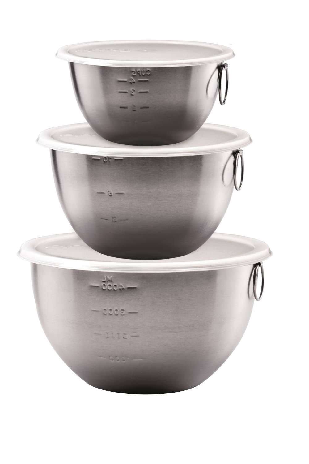 - Set of 3 stainless steel mixing bowls
