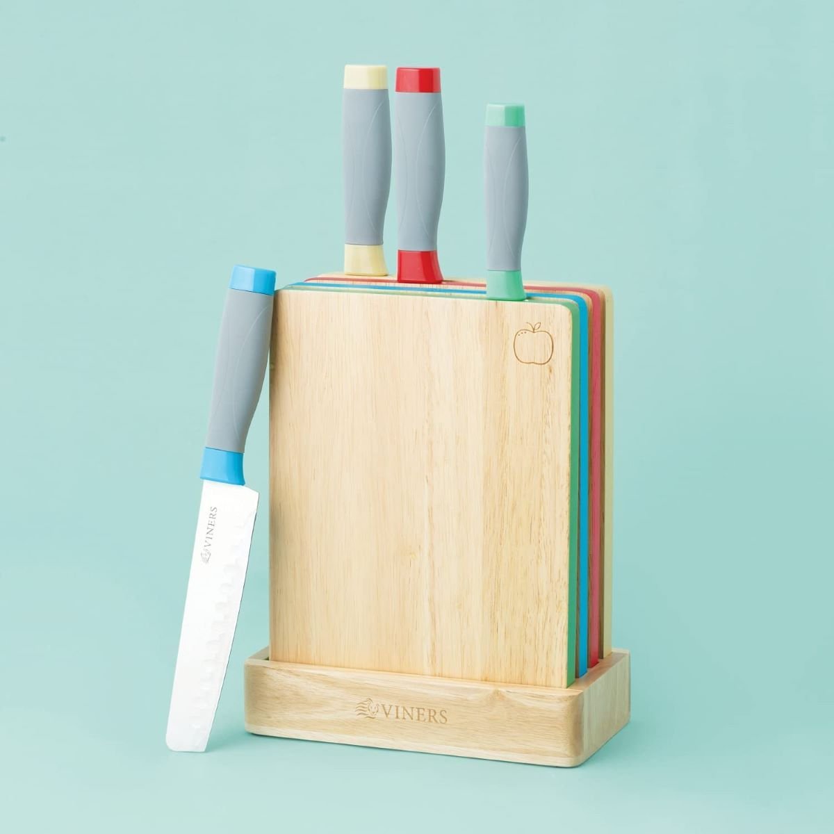 Want to upgrade your kitchen arsenal? Want sharp, smooth-cutting knives that get the job done every time? Want to avoid cross contamination? Then you need to order the Assure Color Coded Knife Block & Board Set from world-renowned, UK-based cutlery brand Viners!