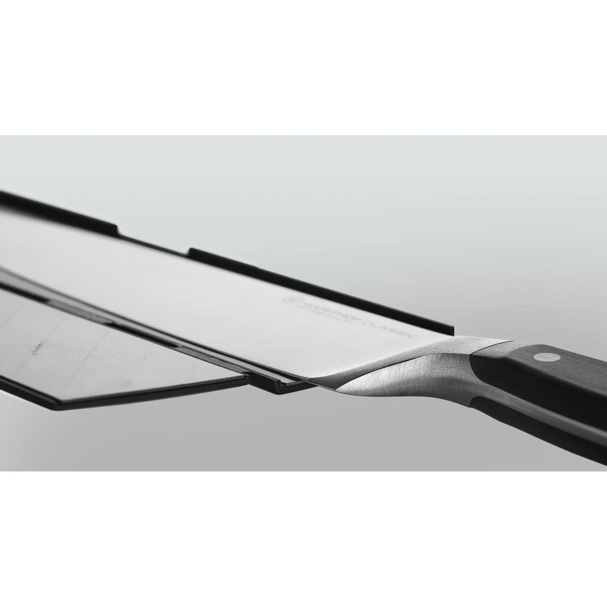 Knives dull over time, not only through use but also through inappropriate storage. The magnetic WÜSTHOF Blade Guard ensures safe storage of your knives, protecting them from scuffs and damage. This hinged blade protector is easy to open and is magnetised which allows for secure closure.