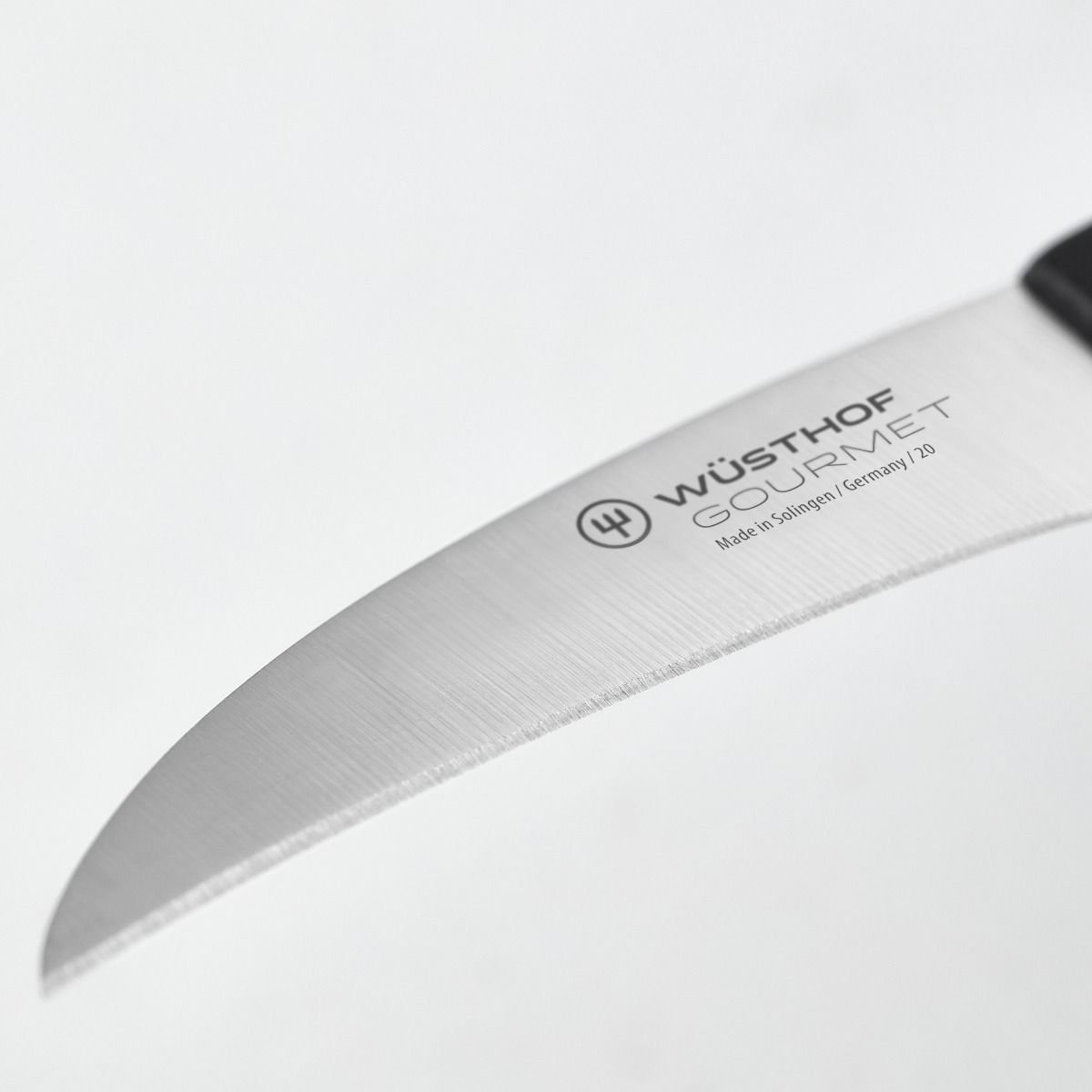 As the 2nd most used knife in the kitchen, the Wusthof Paring Knife is tailored for the smaller kitchen tasks when a standard cook’s knife may be too large for the job at hand. The narrow blade of the paring knife make it easy to peel garlic cloves, mince shallots, trim herbs or other intricate cutting. The Wusthof Gourmet 3-Piece Paring Knife Set includes all 3 common types of paring knives from Wusthof – the clip point, flat cut & peeling paring knives. The straight edge blade cuts smoothly through different cuts of meats, denser vegetables or fruits. The laser-cut stamped blade is constructed of high-carbon, stain-resistant steel & is triple-riveted to the black synthetic handle. The knives in the Gourmet Collection are lighter, more economical versions of Wusthof’s forged knives. Craftsmanship & durability are important factors in choosing the right knife. Wusthof is a family-owned company who has been manufacturing knives & cutlery for over 200 years in Solingen, Germany – also known as the “City of Blades”.