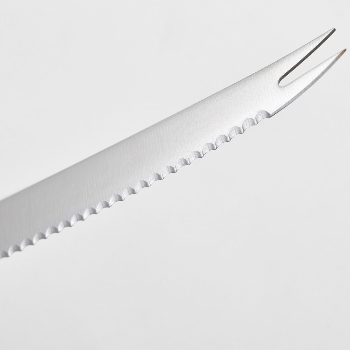 - Serrated edge blade has small, saw-like teeth to slice cleanly through food with delicate textures without damaging soft insides