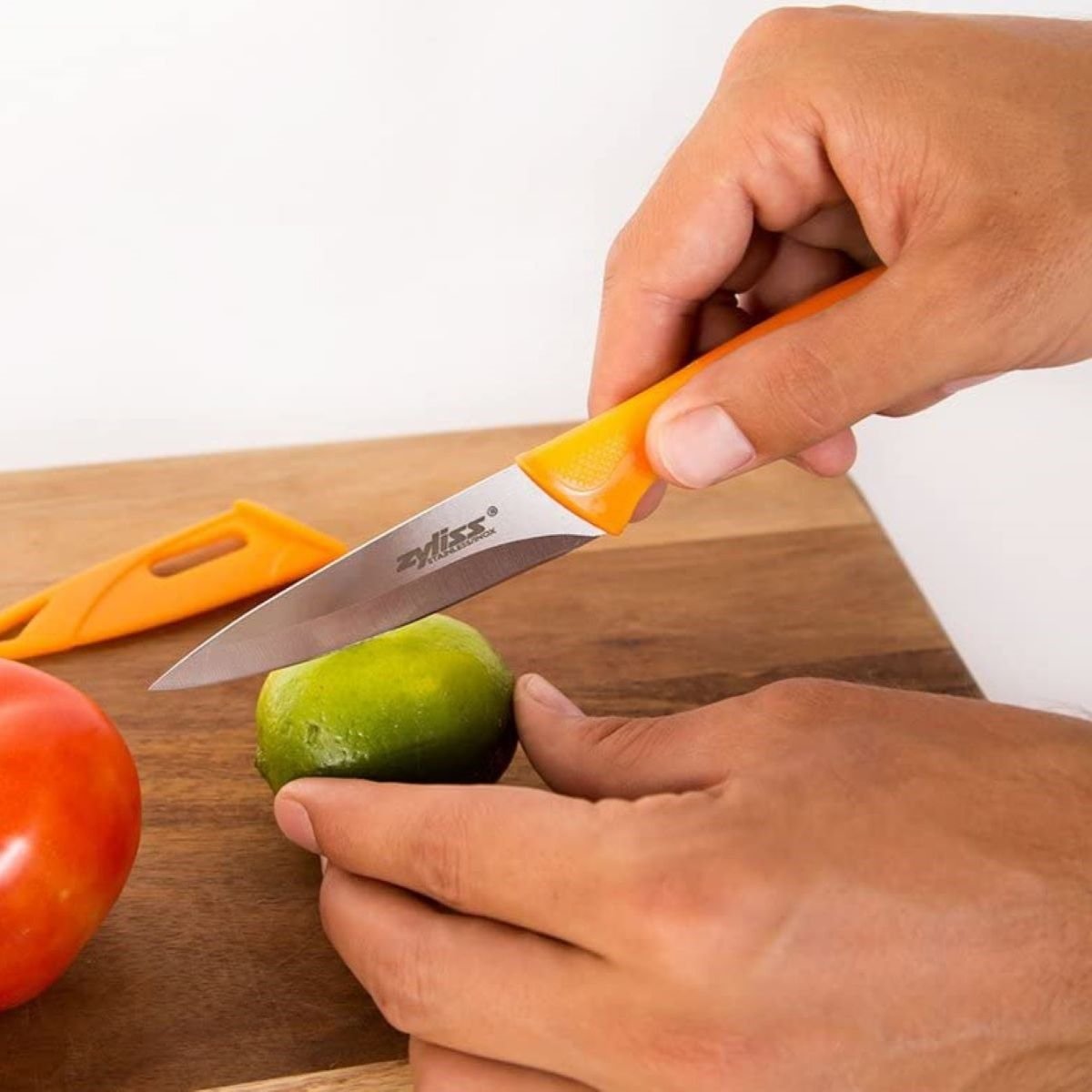 The Zyliss 6 Piece Kitchen Knife Set includes an excellent range of knives for the beginner and experienced chef. This selection of high-carbon stainless steel blades retains their super sharp edges for prolonged use. The inclusion of safety blade guards allows for safe travel and storage. Ergonomic handles come with soft touch rubber grips. This promotes precision control and comfort, while reducing hand fatigue. All knives come with a 5 Year Zyliss Guarantee and are dishwasher safe. Focusing on functionality, durability, design, cleanliness and safety, Zyliss has relied upon a heritage of excellence that began in Switzerland over sixty years ago. Building on this time-held tradition, the brand has advanced to produce and distribute kitchen equipment that is world-renowned. Zyliss has pioneered the design of more than 200 kitchen essentials, with quality and engineering that cannot be duplicated. The Zyliss Guarantee ensures that all products remain free from defects in material and workmanship for 5 years on manual appliances.